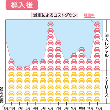 最大稼働率の期間に合わせて「カーリース」で保有