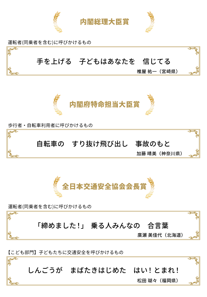 内閣総理大臣賞・内閣府特命担当大臣賞・全日本交通安全協会会長賞を受賞!