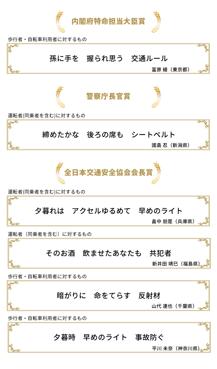 内閣府特命担当大臣賞・警察庁長官賞・全日本交通安全協会会長賞を受賞!