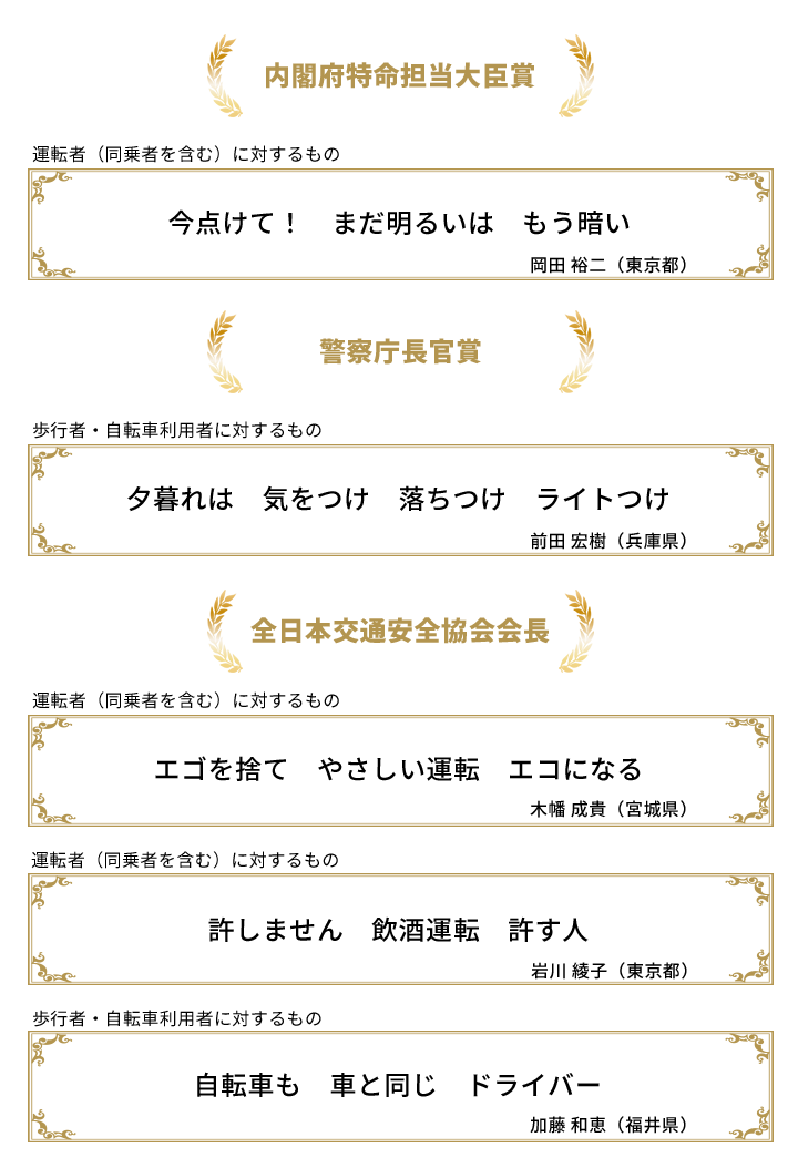 内閣府特命担当大臣賞・警察庁長官賞・全日本交通安全協会会長賞を受賞!