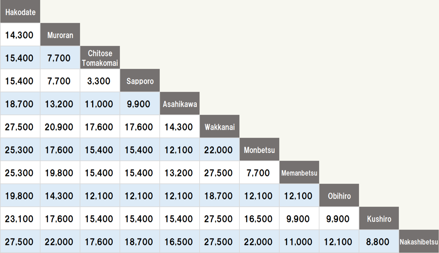 我們將修改Hokkaido境內營業處之間單程租賃(異地還車)的單程租車手續費。